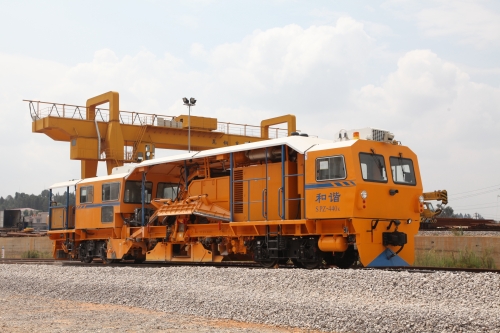 Equipped with a hydraulic drive, the machine is characterized by a state-of-the-art technology and perfect performance. The bogie adopts double damping structure, improving the self-propelled and towed speeds and switch traffic abilities, thus guaranteeing safety performance; the frame is made of solid structure, so that its strength and stiffness can meet the requirements for high-speed running of a long train formation; the side plow and middle plow can coordinate for the bidirectional ballast distribution and regulation, with the features of simple control and safe operation; the rotary middle plow device with innovative design and plug middle plow device may be additionally equipped, based on the customers’ needs so as to make the ballast distributing function more closely integrated with practice; the cleaning device has an extra cleaning power, thus able to effectively clean the ballast scattering over the sleeper, fastening and track side; the longitudinal corrugated sidewall conveyor belt and the ballast hopper can be used to store and distribute the cleaned ballast, and backfill the section with little ballast or notch left from ballast screening in order to achieve optimum utilization of ballast and provide orderly and beautiful lines after the ballast distributing and regulating work is concluded; the working safety and shutdown alarm system can identify the obstacles in a timely manner and give sound and light alarms during the side plow’s work, i.e., when the obstacles are within the minimum safe distance but the complete machine makes no response, it can shut down the entire machine and produce an alarm to ensure safe and reliable working; the ballast bed cross-section laser scanning system can compare the ballast bed cross-section upon regulating with the one of the standard ballast bed, and automatically calculate the excess or loss of ballast in the current section of line, hence guide the field ballast distributing and regulating operation, so as to achieve meticulous ballast management.?